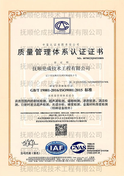 撫順倫成技術(shù)工程有限公司成立于1996年6月20日,是具有獨(dú)立法人資格的檢驗(yàn)檢測(cè)有限責(zé)任公司。公司專業(yè)從事特種設(shè)備壓力容器的檢驗(yàn)檢測(cè)(含理化試驗(yàn))工程。公司具備特種設(shè)備、建設(shè)工程、石油化工等行業(yè)的無損檢驗(yàn)檢測(cè)資格,先后取得遼寧省市場(chǎng)監(jiān)督管理局頒發(fā)的“特種設(shè)備檢驗(yàn)檢測(cè)機(jī)構(gòu)核準(zhǔn)證”;遼寧省市場(chǎng)監(jiān)督管理局頒發(fā)的“檢驗(yàn)檢測(cè)機(jī)構(gòu)資質(zhì)認(rèn)定證書”(CMA);遼寧省生態(tài)環(huán)境廳頒發(fā)的“輻射安全許可證”……